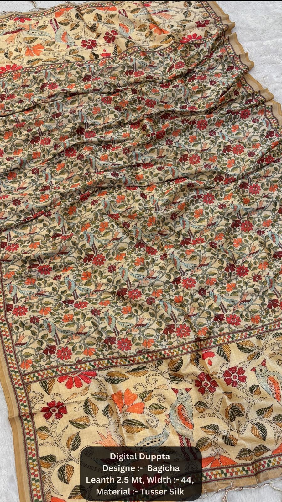 "Order now: Stylish Tusser Silk dupatta with vibrant digital print for ₹450. Perfect for adding a contemporary touch to lehengas, salwar kameez, and sarees."