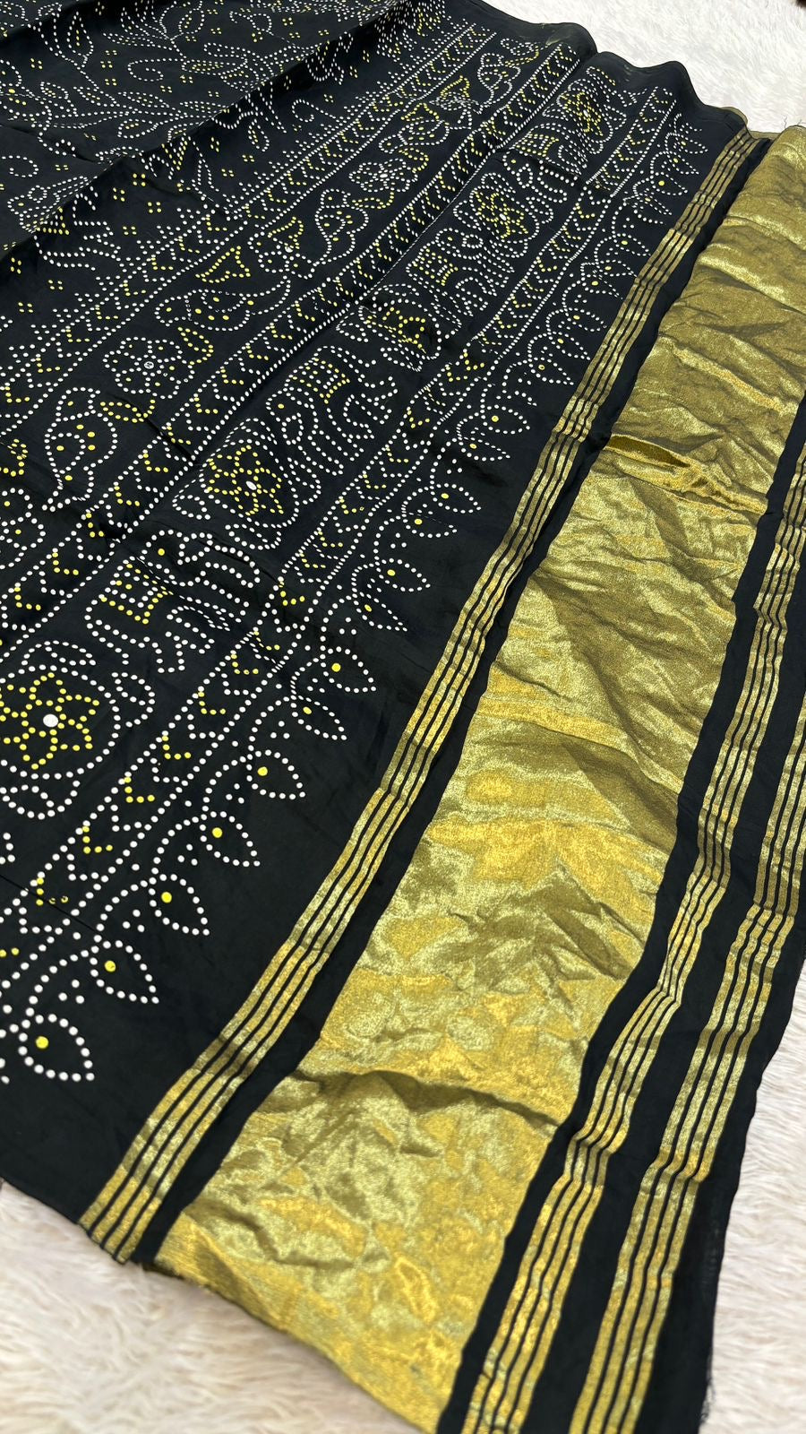 Pallu: The pallu is adorned with intricate lagdi patti (applique) work, showcasing skilled craftsmanship and attention to detail. This traditional technique enhances the overall appeal of the dupatta.