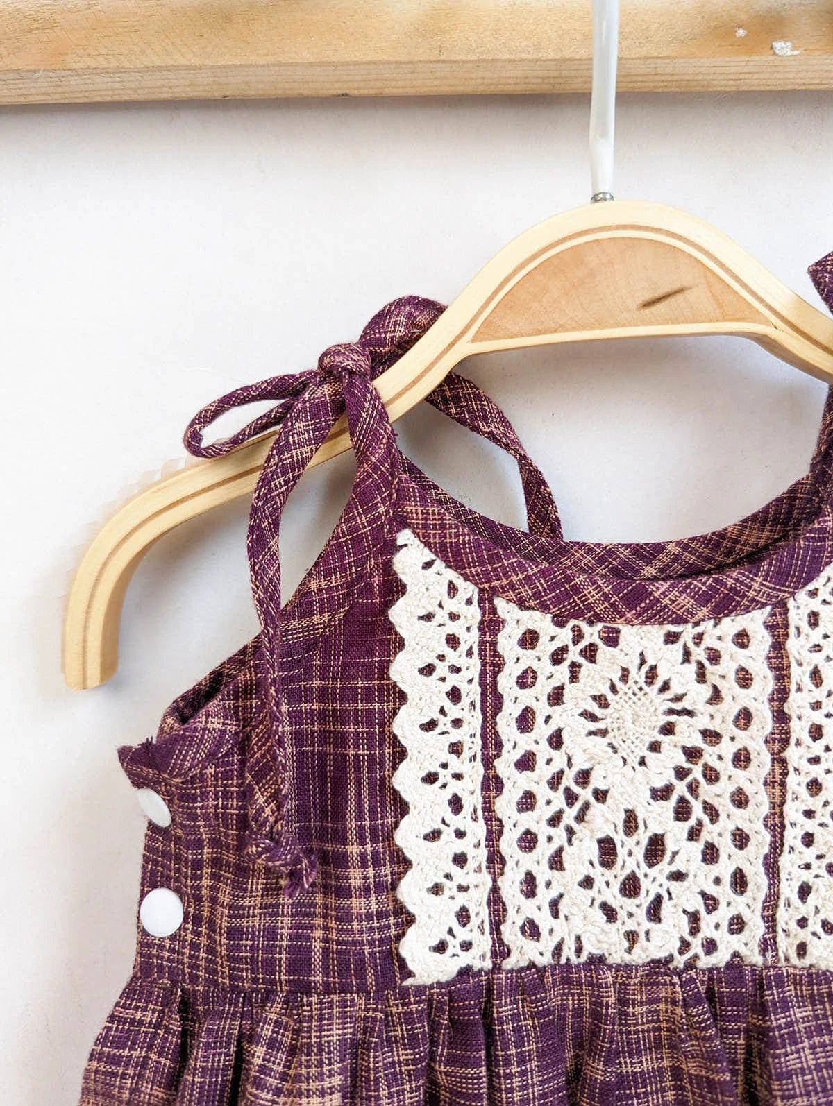 Halemons 100% Cotton Romper with Crochet Lace - Easy Diaper Change - Wine