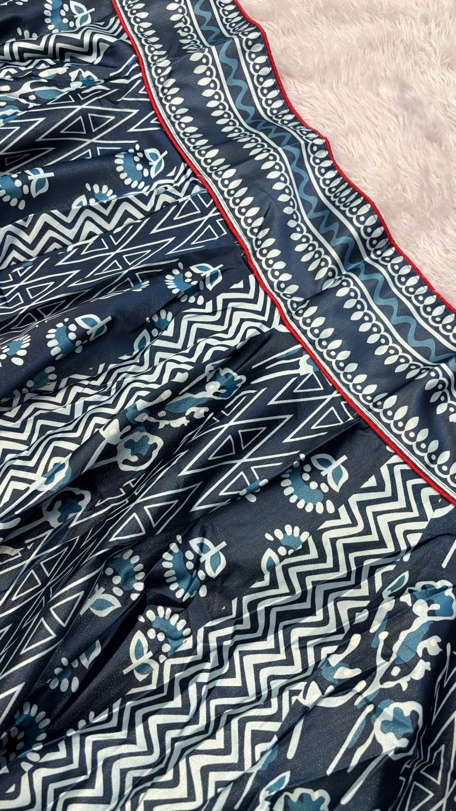 Dhabu Print Indigo Designe, 7 Meter Flare Lehanga Choli