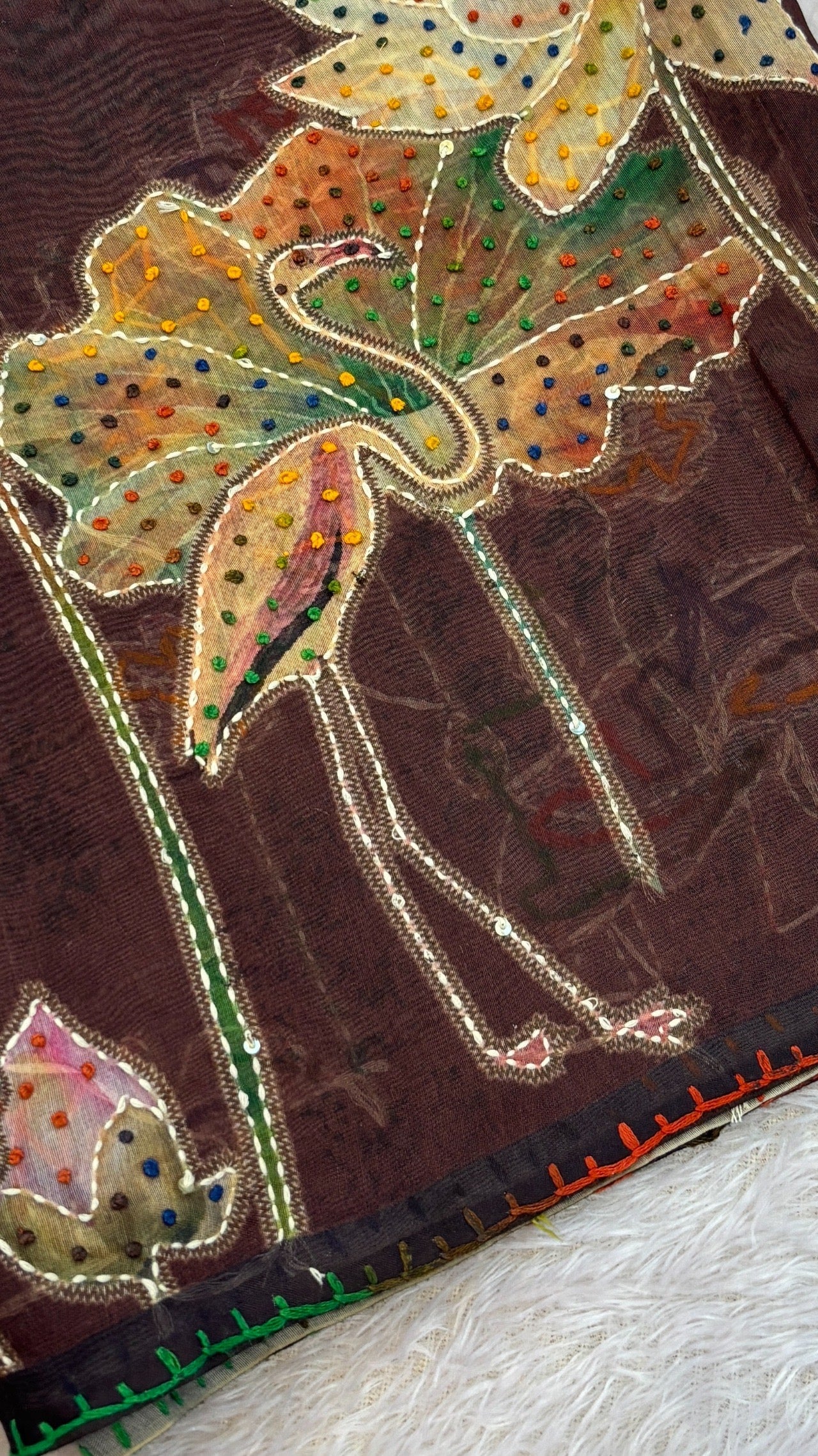 Elegant Hand Boutique Saree with French Knot and Unn Work Detailing.