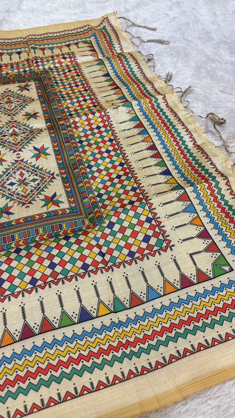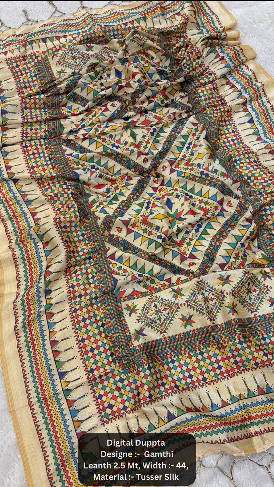 "Order now: Stylish Tusser Silk dupatta with vibrant digital print for ₹450. Perfect for adding a contemporary touch to lehengas, salwar kameez, and sarees."