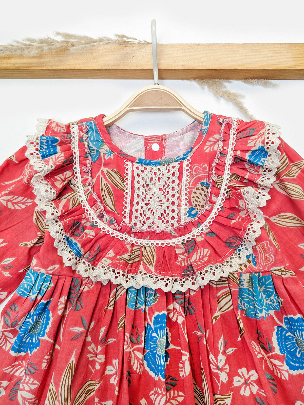 Step into the world of elegance with our Pakistani-inspired Red Full Sleeves Frilled Frock.