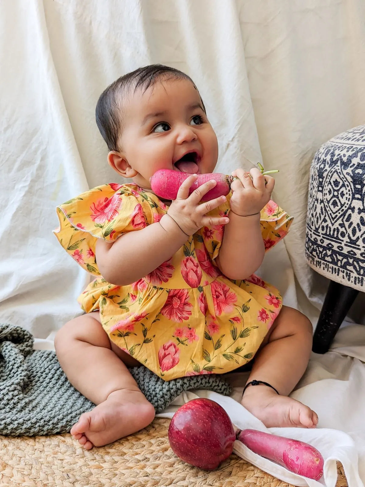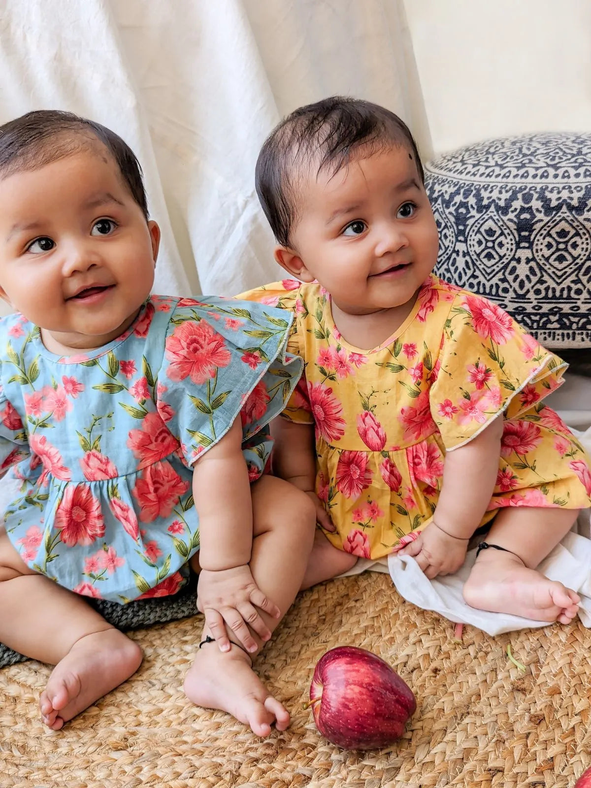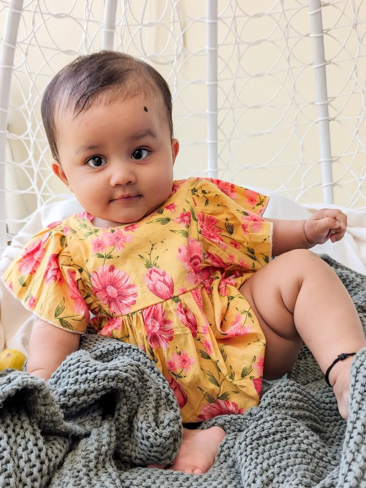 Halemons Baby Girl Pure Cotton Butterfly Floral Romper- Yellow