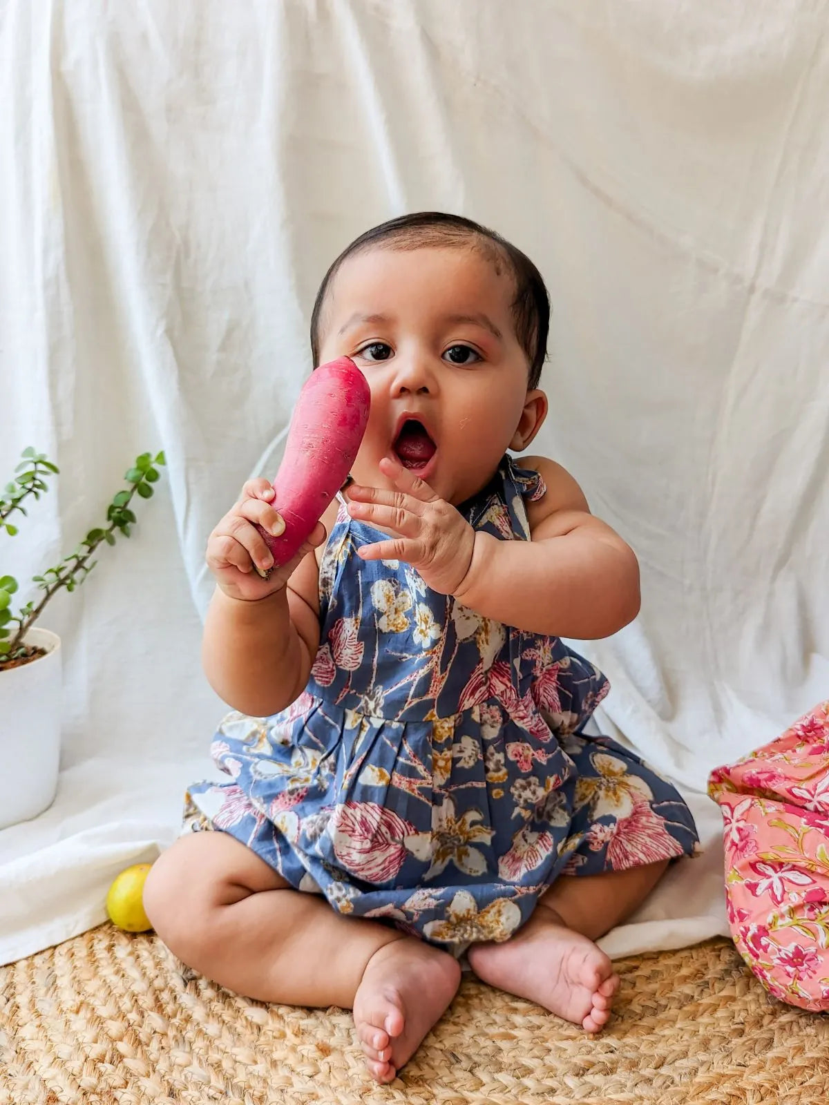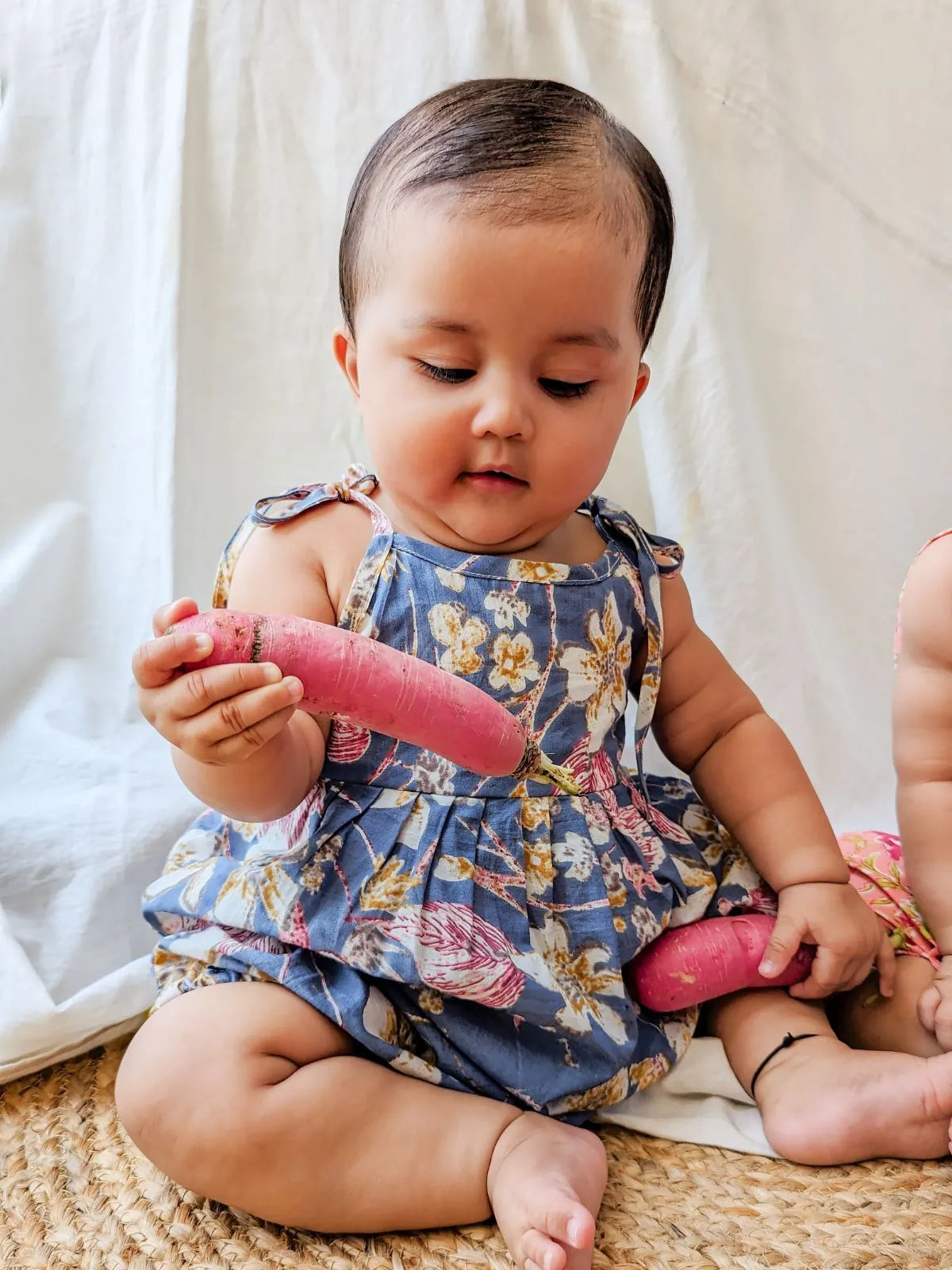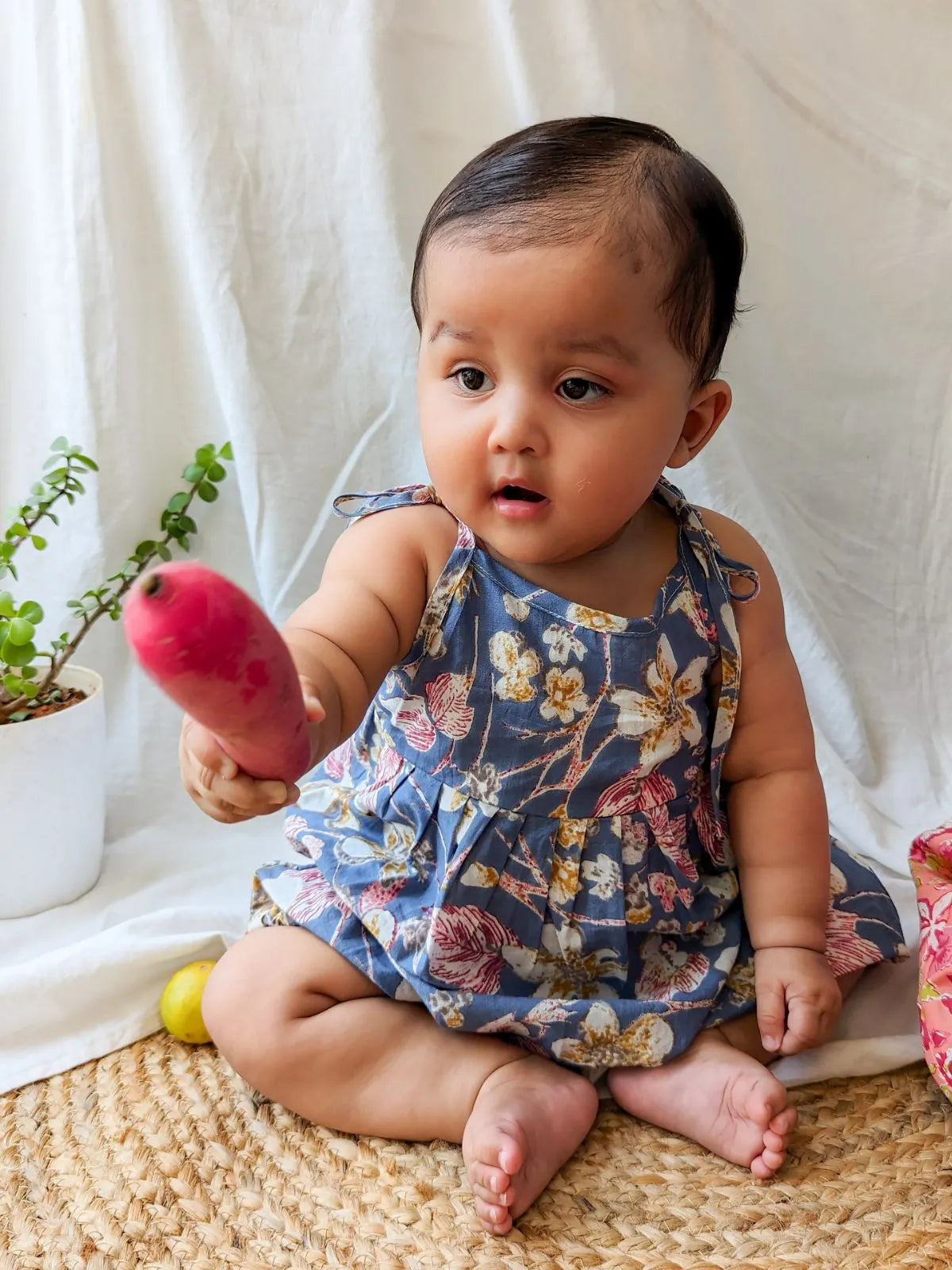 Check out our super light and comfy floral blue romper for kids, perfect for their playtime.