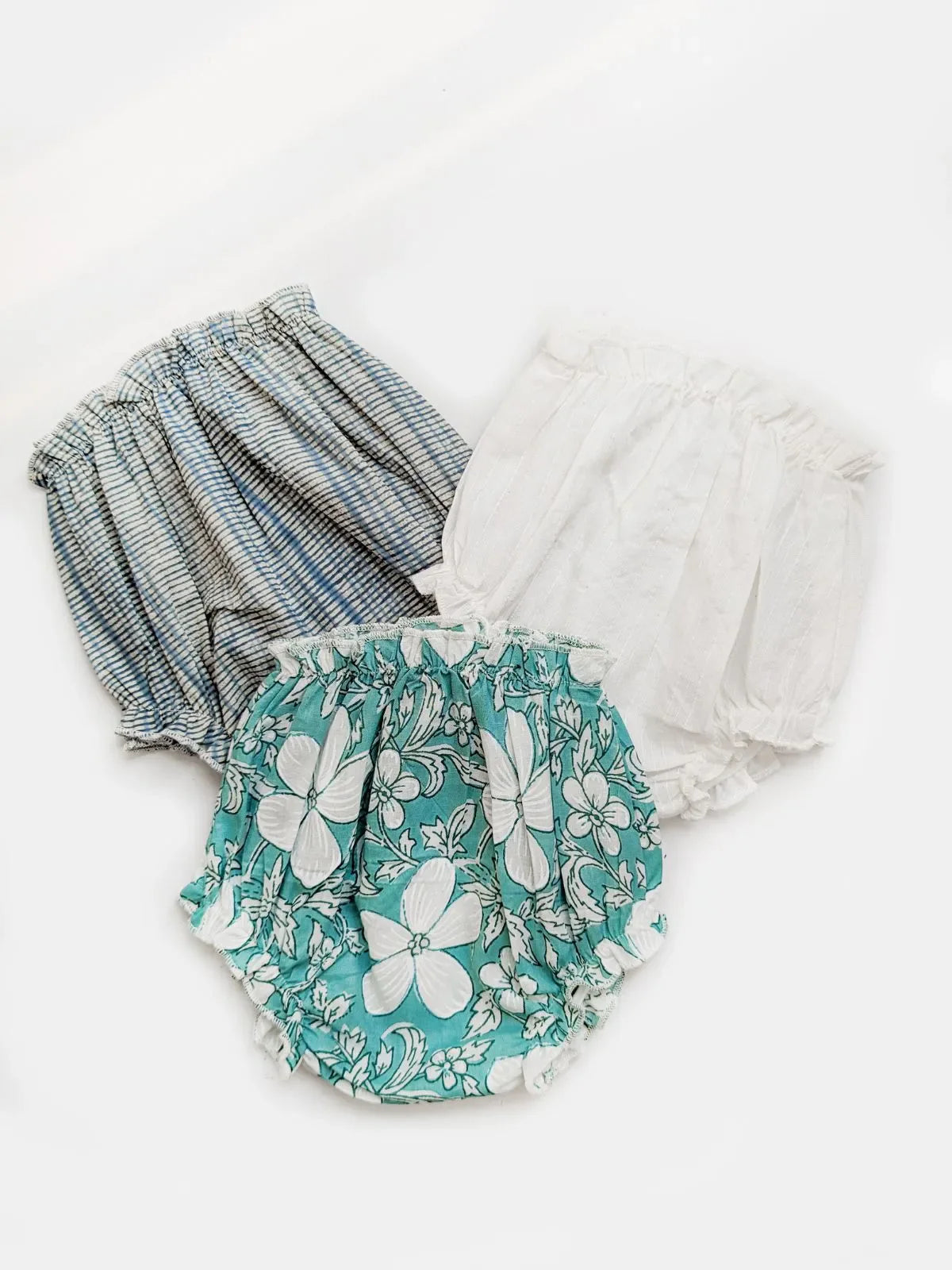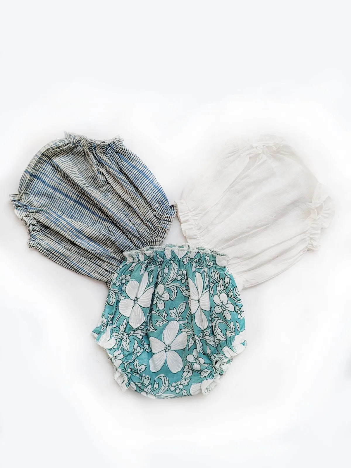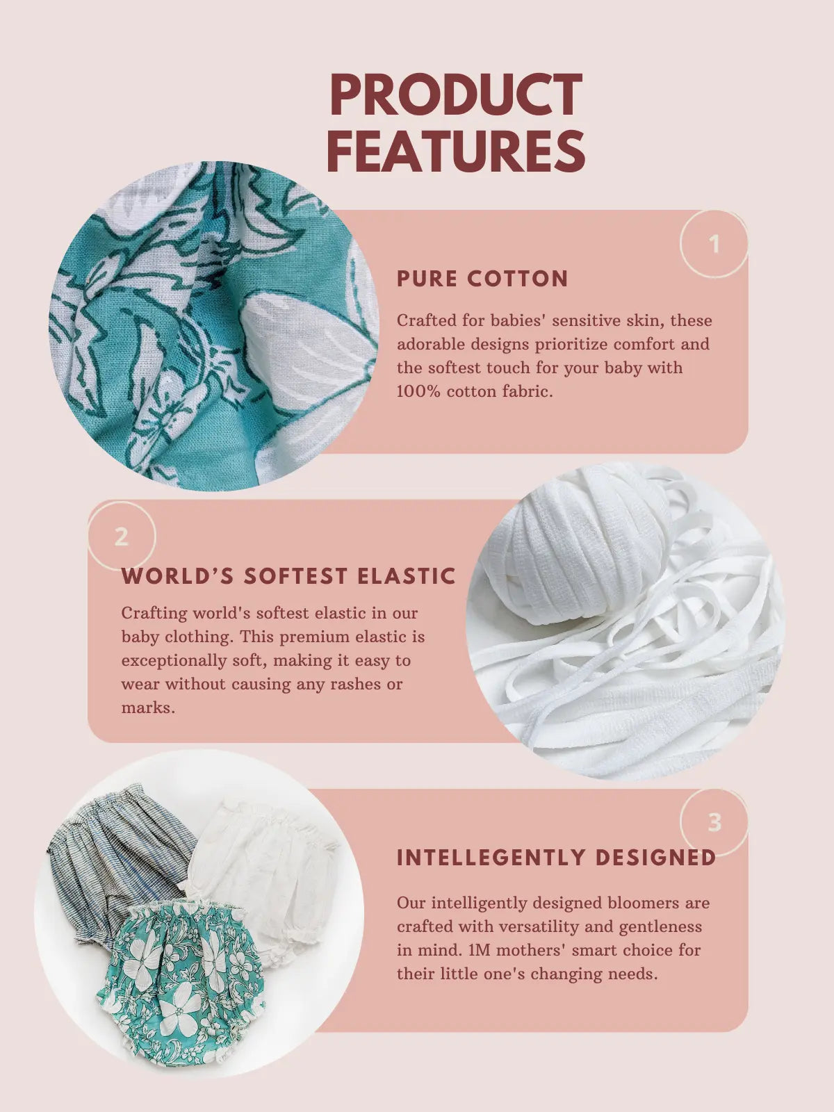 Supersoft fancy bloomers for kids! The soft 100% cotton fabric is super comfortable, highly breathable and master of sweat absorption. We care for your babies' skin so No scratchy tags - only smooth seams and gentle elastics.
