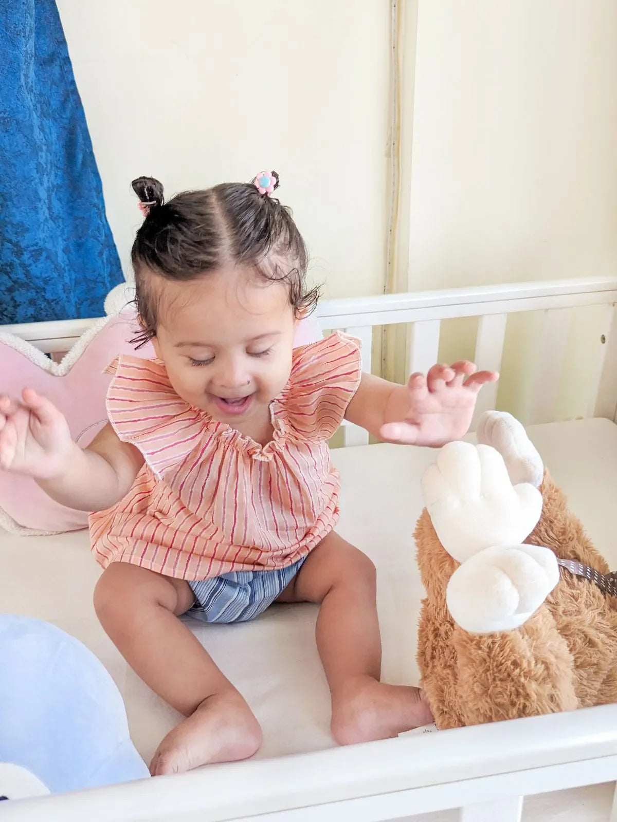 "Summer Tulip" - a pack of three 100% cotton outfits designed specifically for baby girls. These adorable ensembles feature cute frilled shoulders attached as gathered raglan sleeves, adding a playful pattern to the design. Whether worn alone for 0-3 months or paired with our soft gathered bloomers for 3-12 months, this mid-thigh length style is simply irresistible. Crafted with utmost care and attention to detail, "Tiny Tulip" offers the same softness, breathability, and high-quality features as our other baby girls' clothing. Trust in the comfort, cuteness, and delightful pattern of "Summer Tulip" to dress your little princess in style.