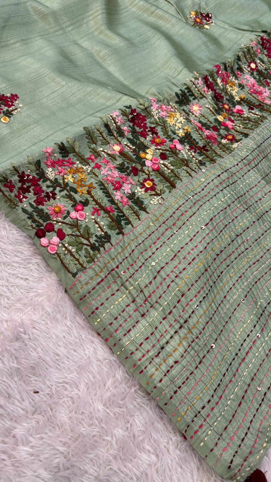 Elegant Hand Boutique Saree with French Knot and Unn Work Detailing.