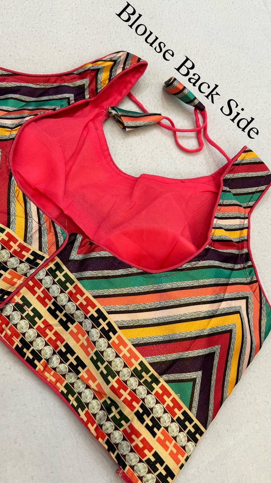 This Lehanga Choli is a celebration of style and versatility. From the Multi Stripe design on the lehanga to the convenience of a ready-made blouse and the playful tussles on the dupatta, it's crafted to be a stunning and adaptable choice for a variety of celebratory events.