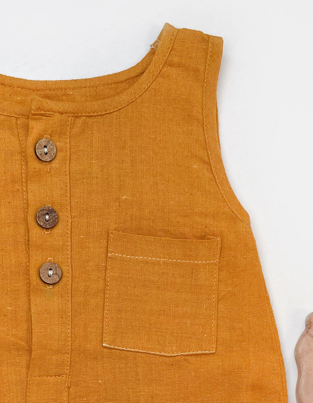 coconut buttons at the front and at the crotch for easy changing.