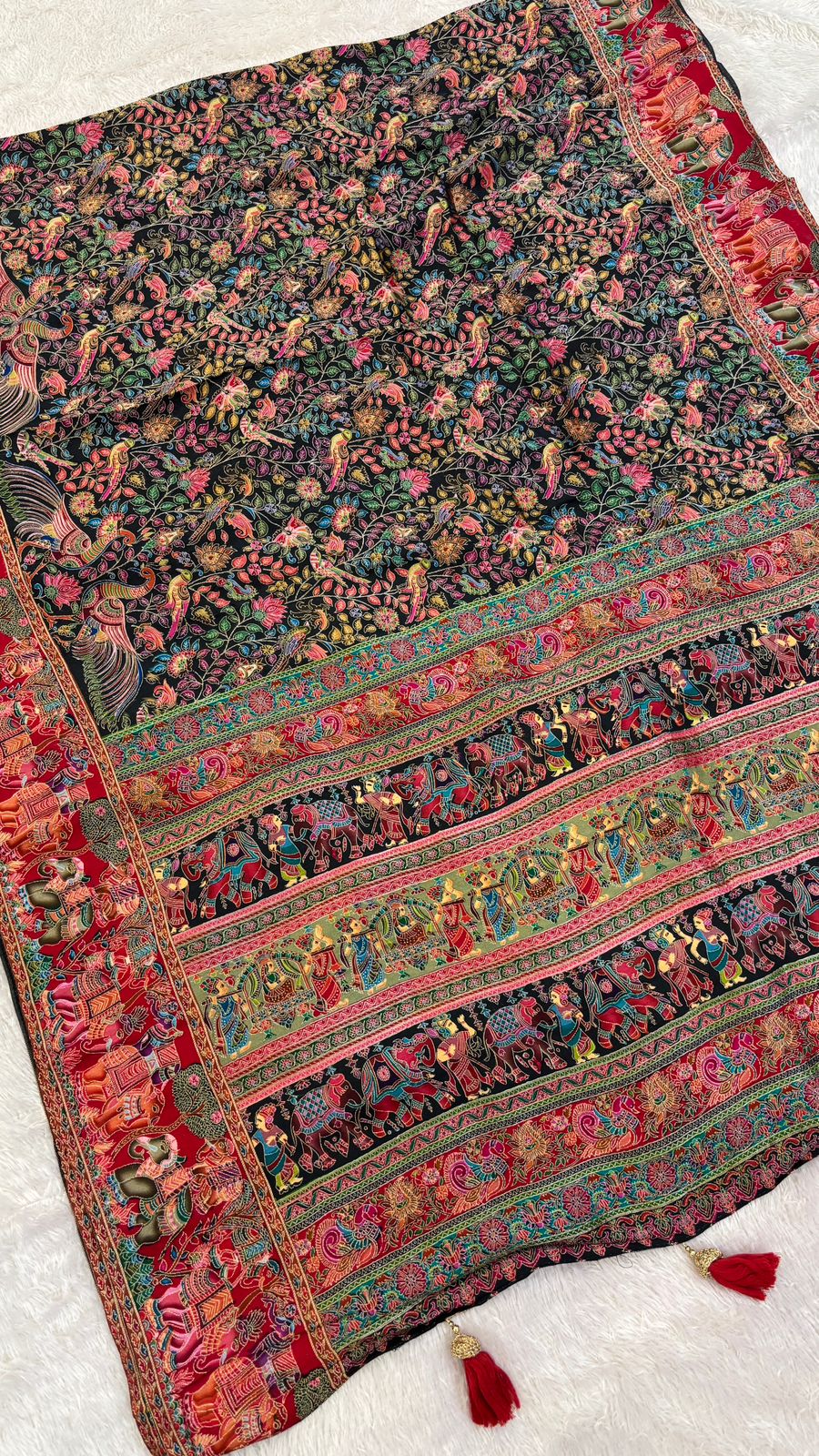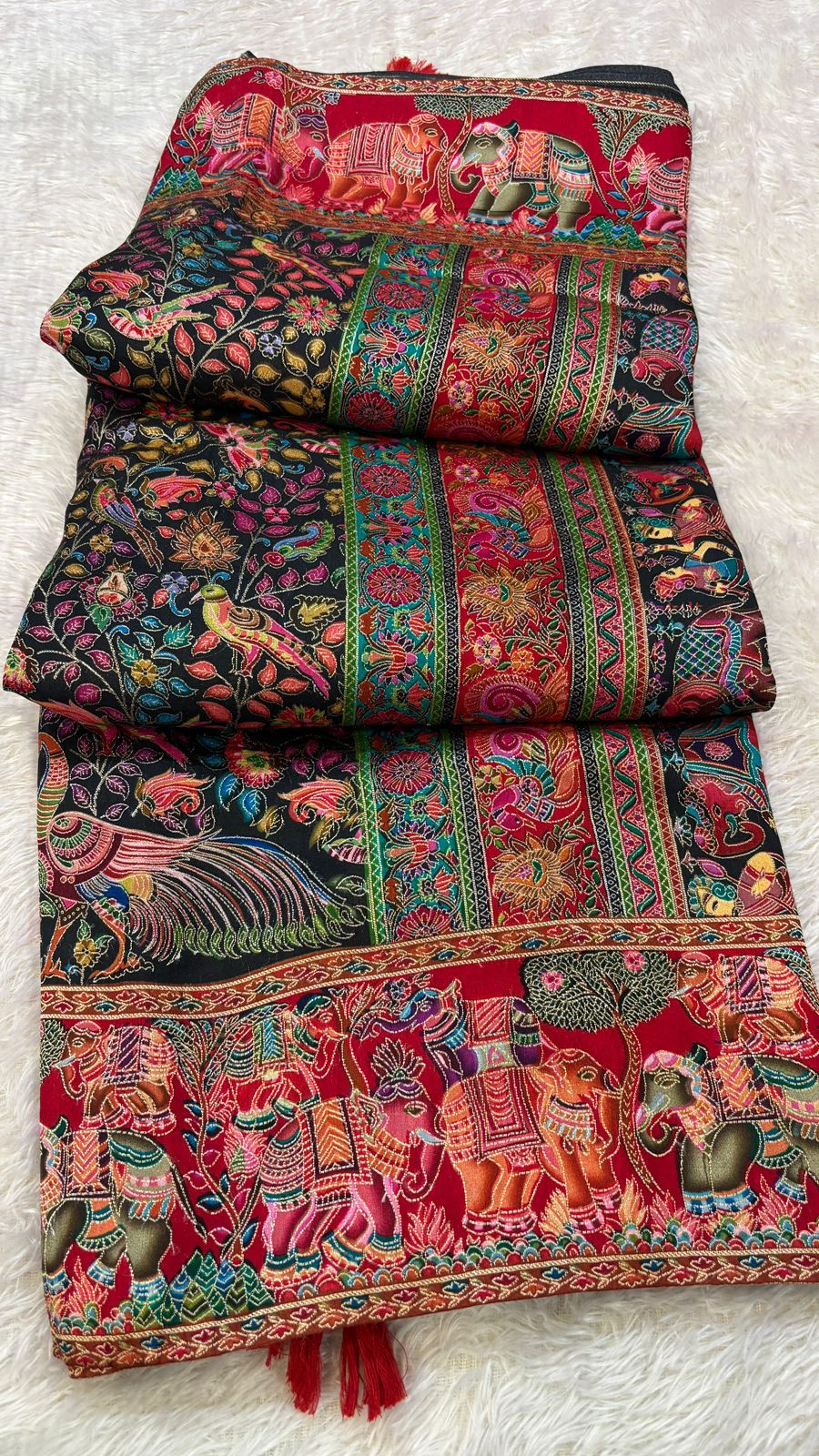 Pure Hand Weaving Kalamkari Saree (Black Jaal A)