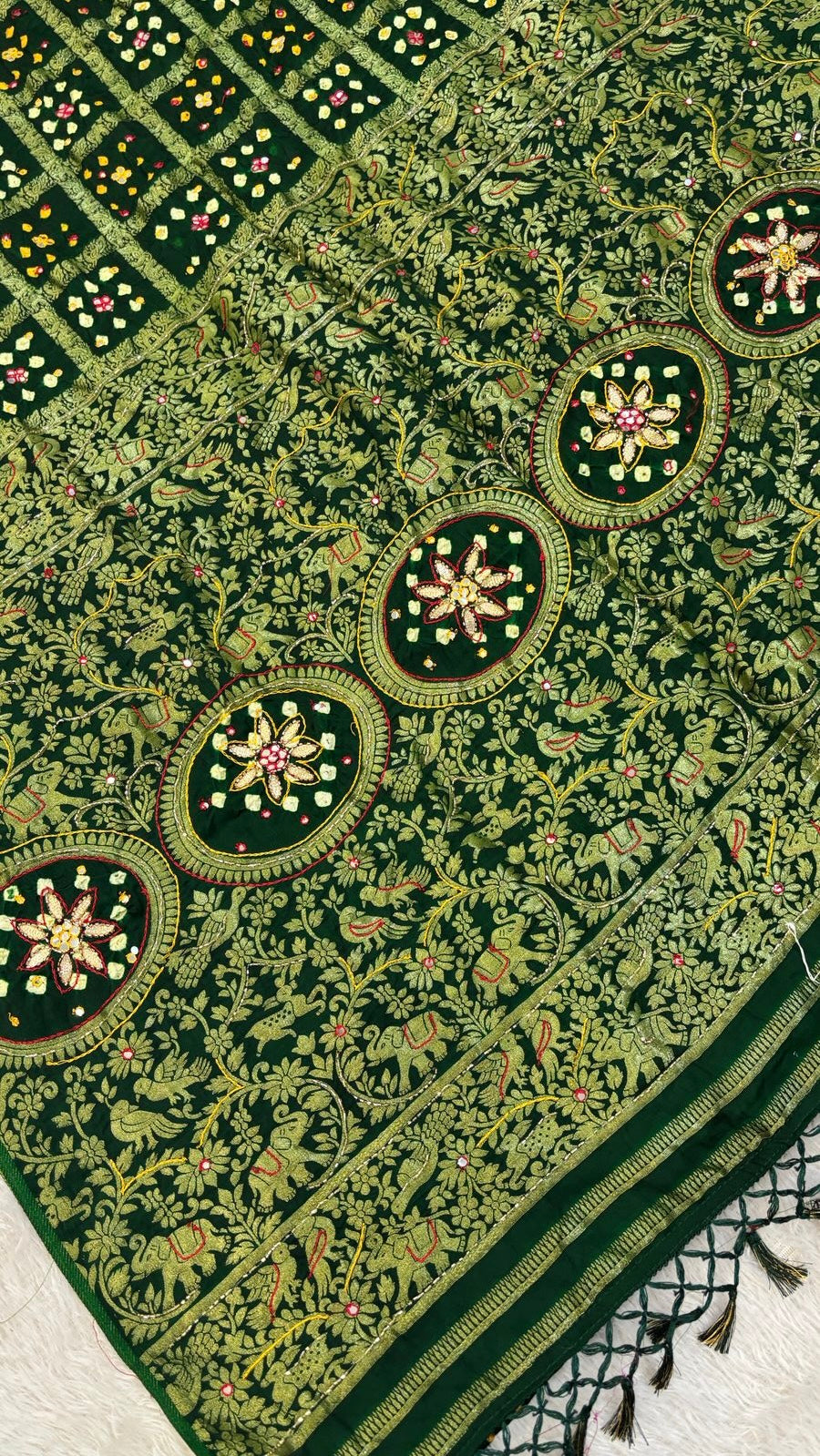 Pure Model Gaji Silk Gottapatti Work Gharchola Saree (Green)