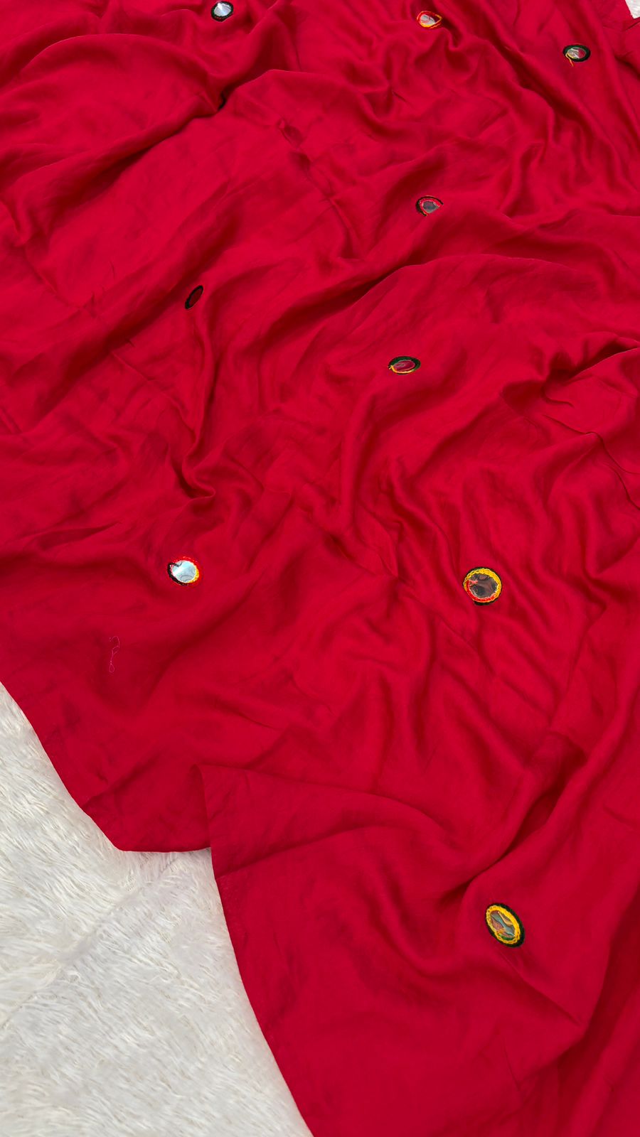 Semi Mirror Work Duppta With Lagadi Patta New - Red