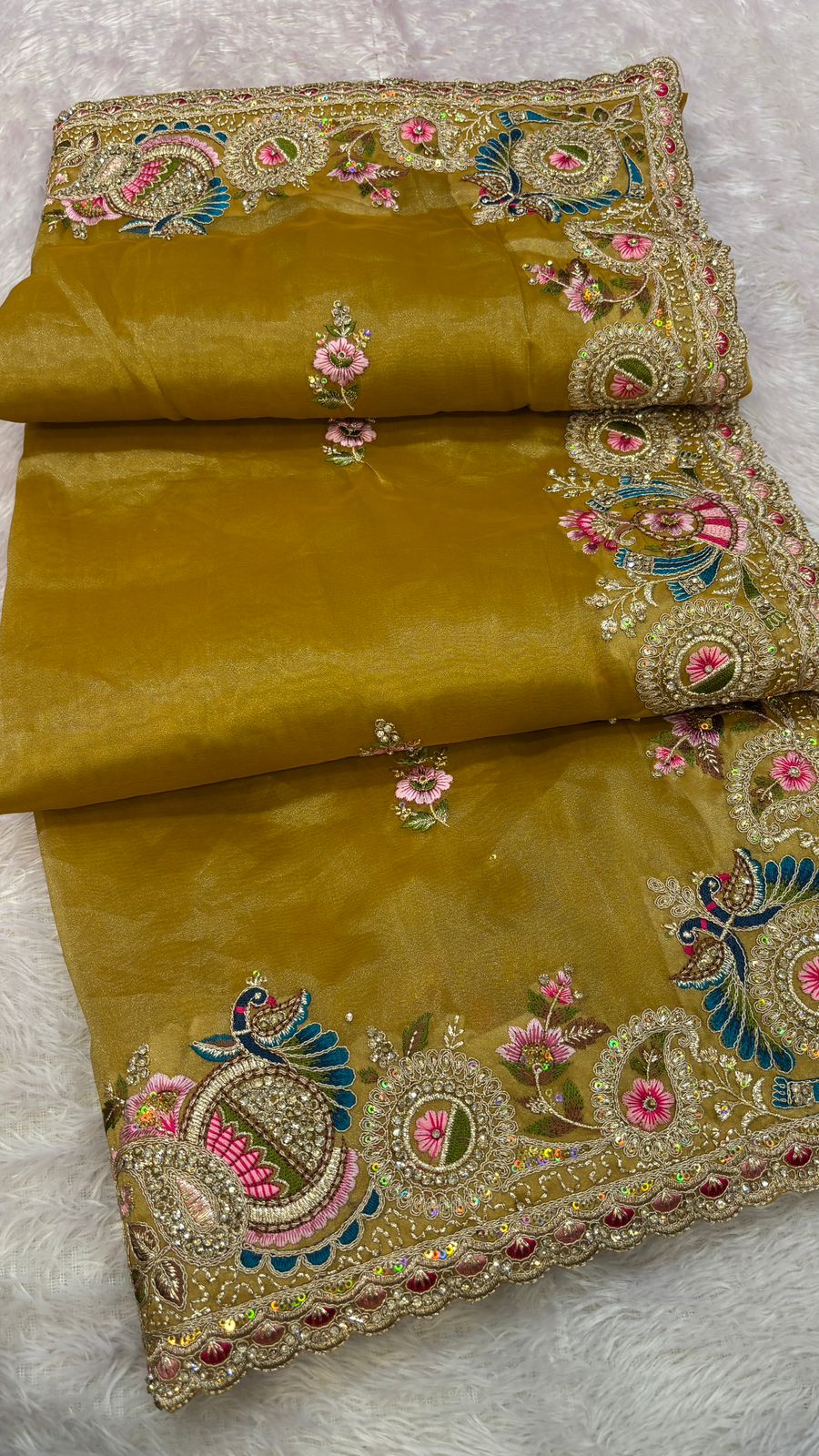 • Material: Made from premium Organza, known for its lightweight feel and sheer, lustrous finish. Organza adds a touch of elegance and sophistication, making this saree flow gracefully.
