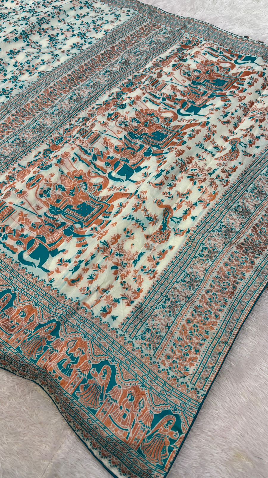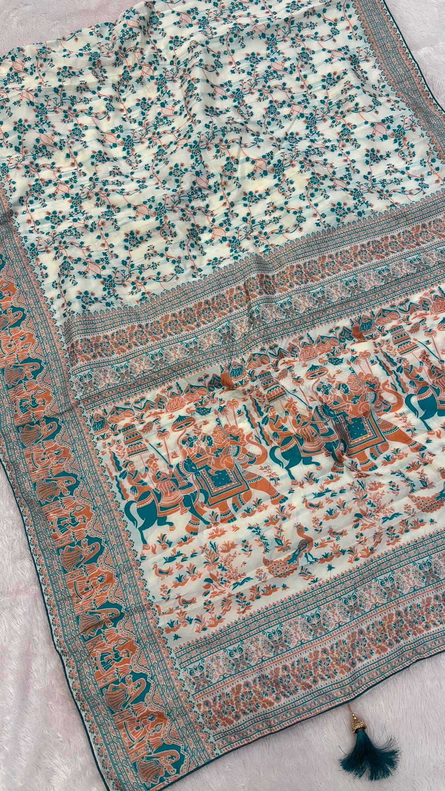 Soft Silk Rajwadi Saree (Pashmina Designe) :- SKY COLOR