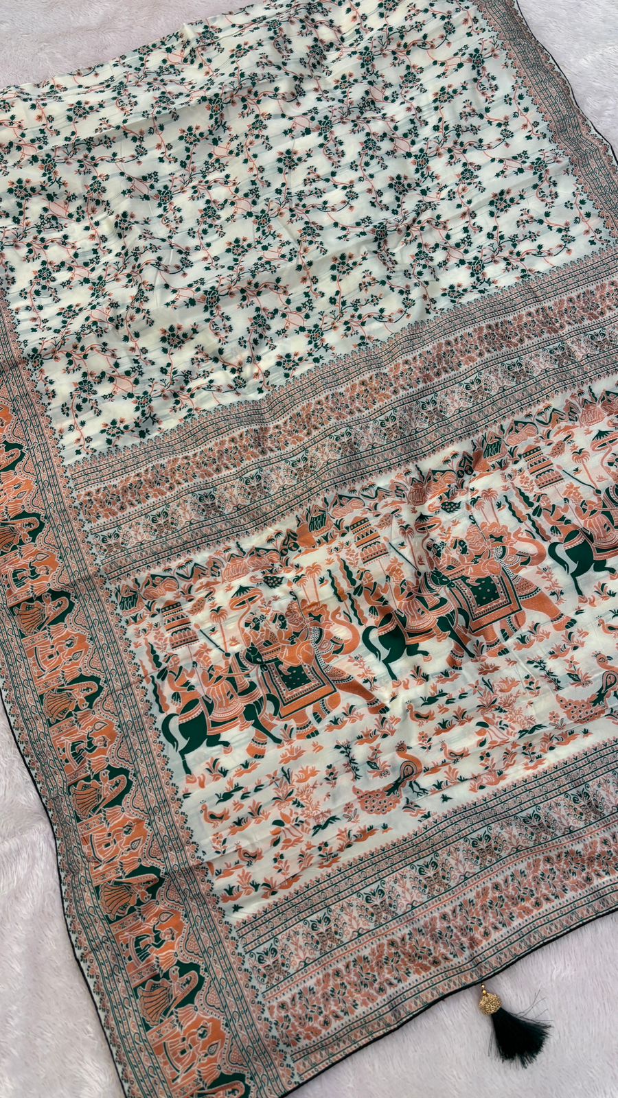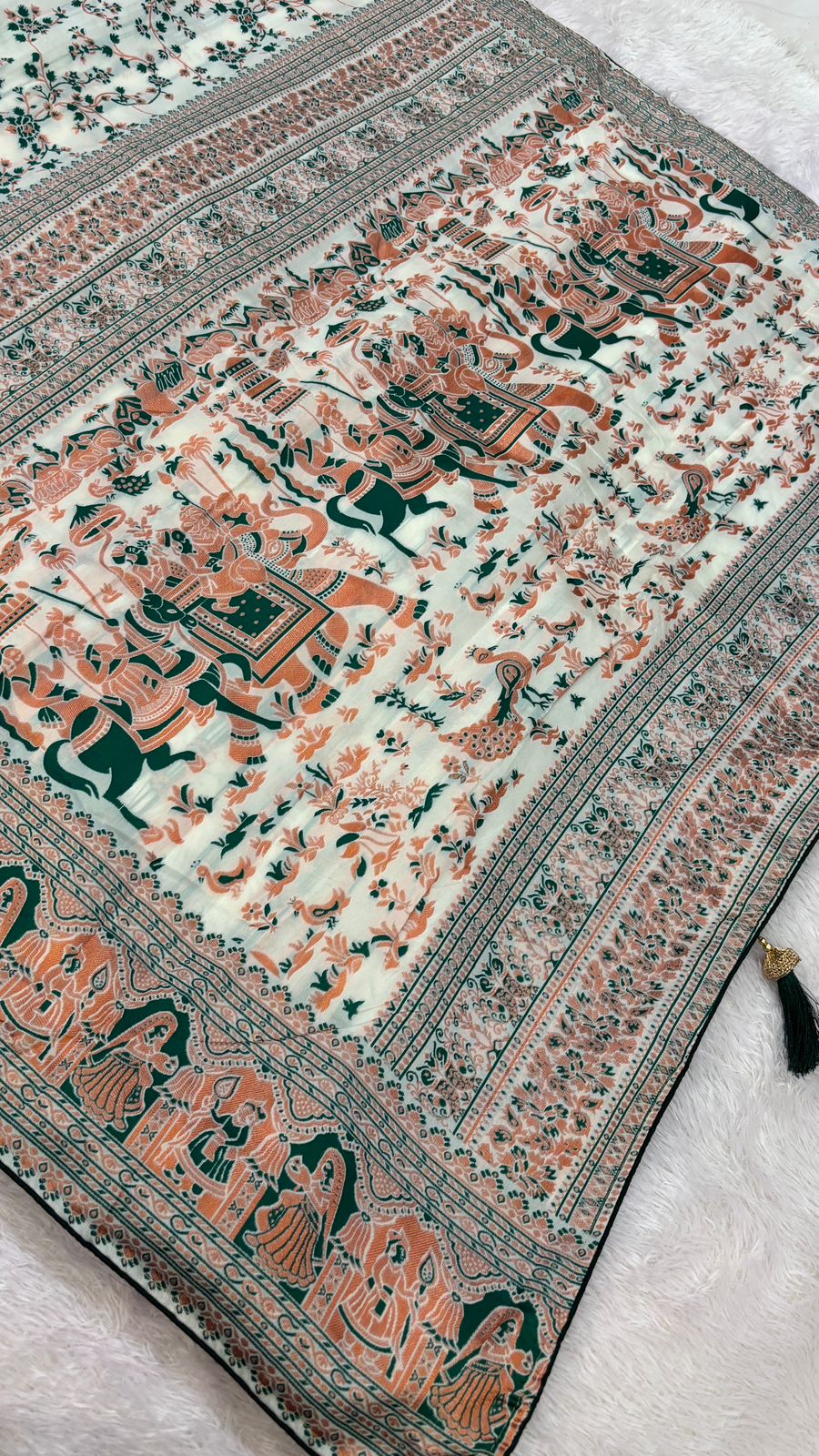 Soft Silk Rajwadi Saree (Pashmina Designe) :- GREEN COLOR