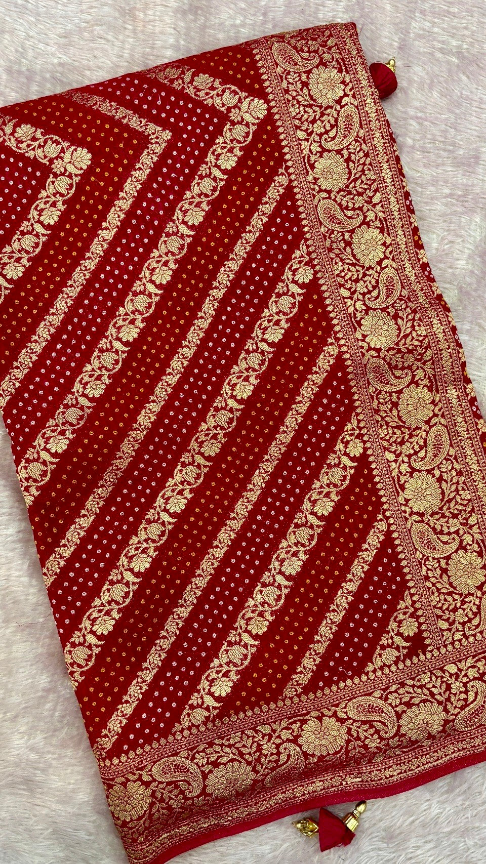 "Order your exquisite Georgette Banarasi Bandhej Saree now and elevate your traditional wardrobe with this timeless masterpiece!"
