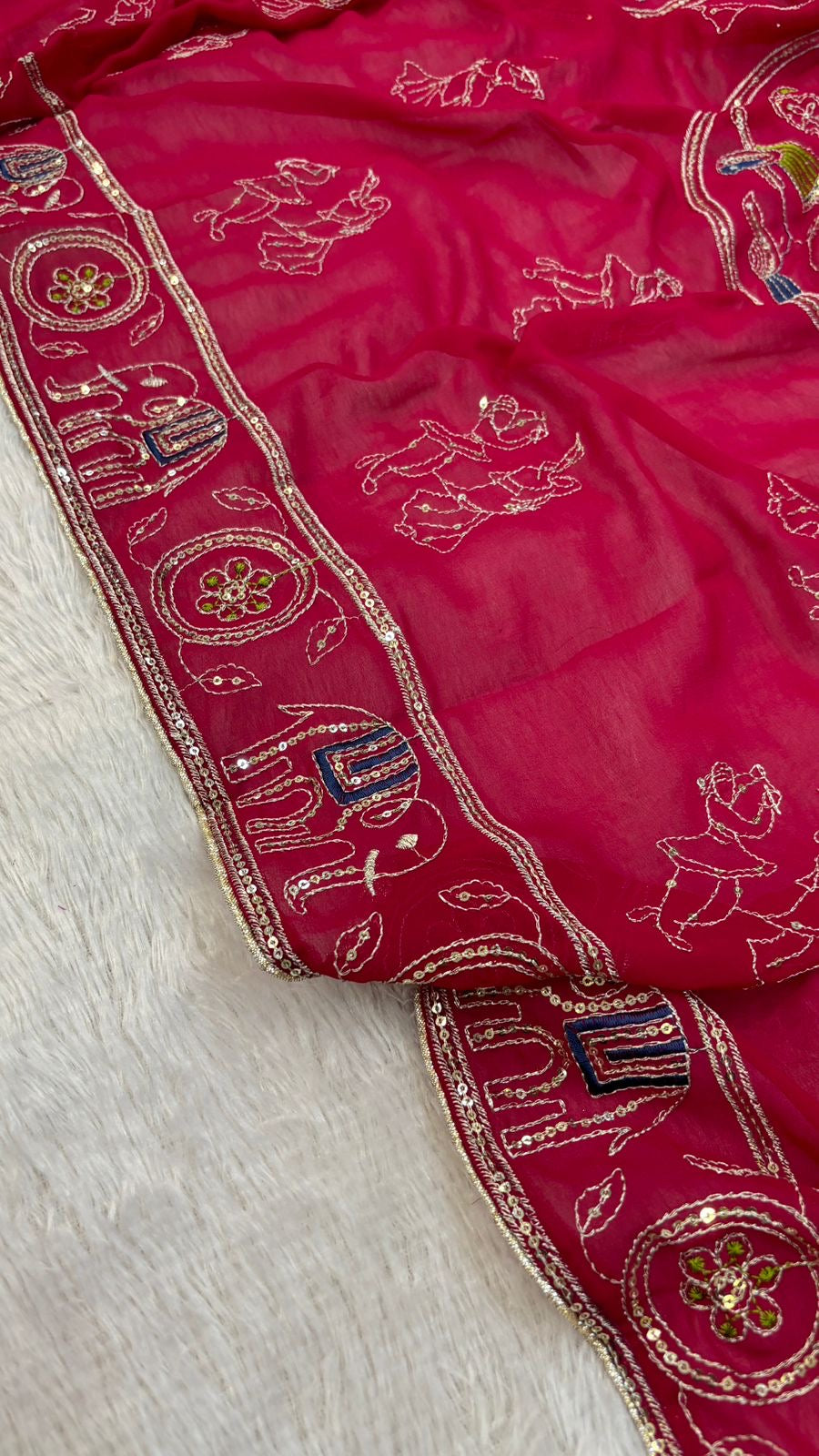"Order now: Georgette Dupatta with Vintage Dhingli Design, 2.5 meters long, for ₹890. Ideal for lehengas, salwar kameez, and sarees.