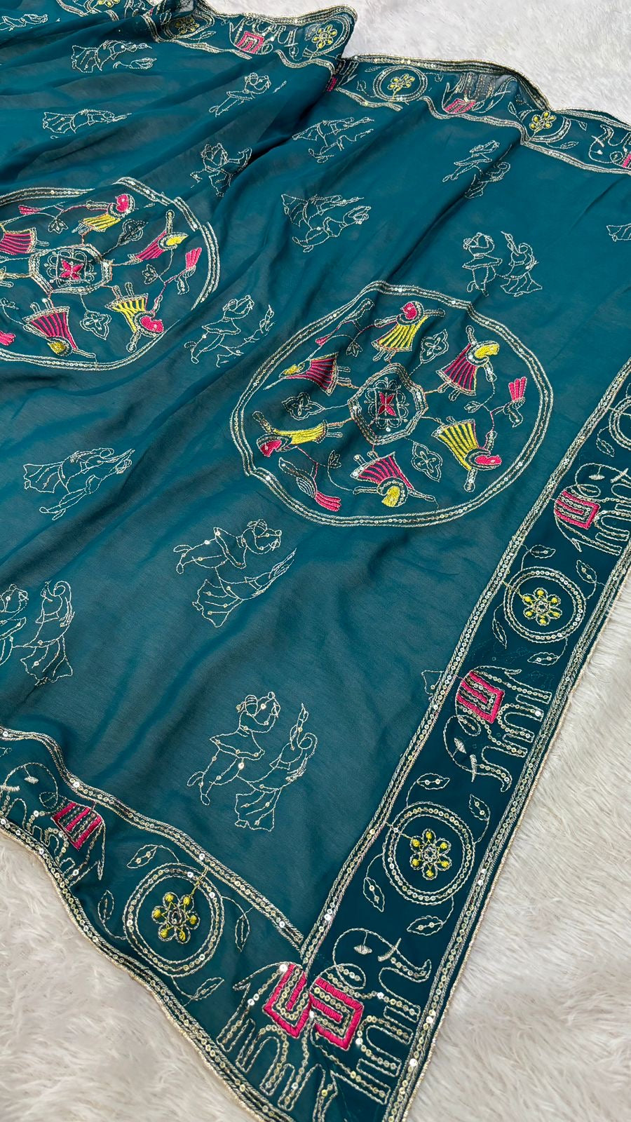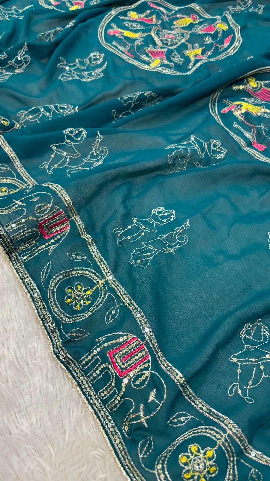 - Made from high-quality Georgette, known for its lightweight and flowy texture.