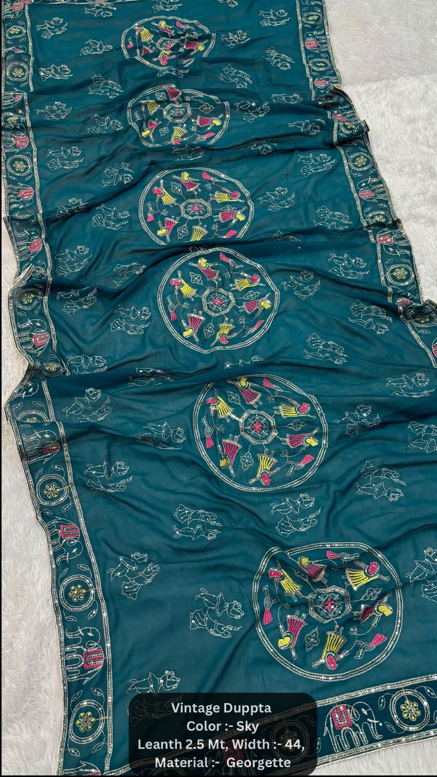 "Order now: Georgette Dupatta with Vintage Dhingli Design, 2.5 meters long, for ₹890. Ideal for lehengas, salwar kameez, and sarees.